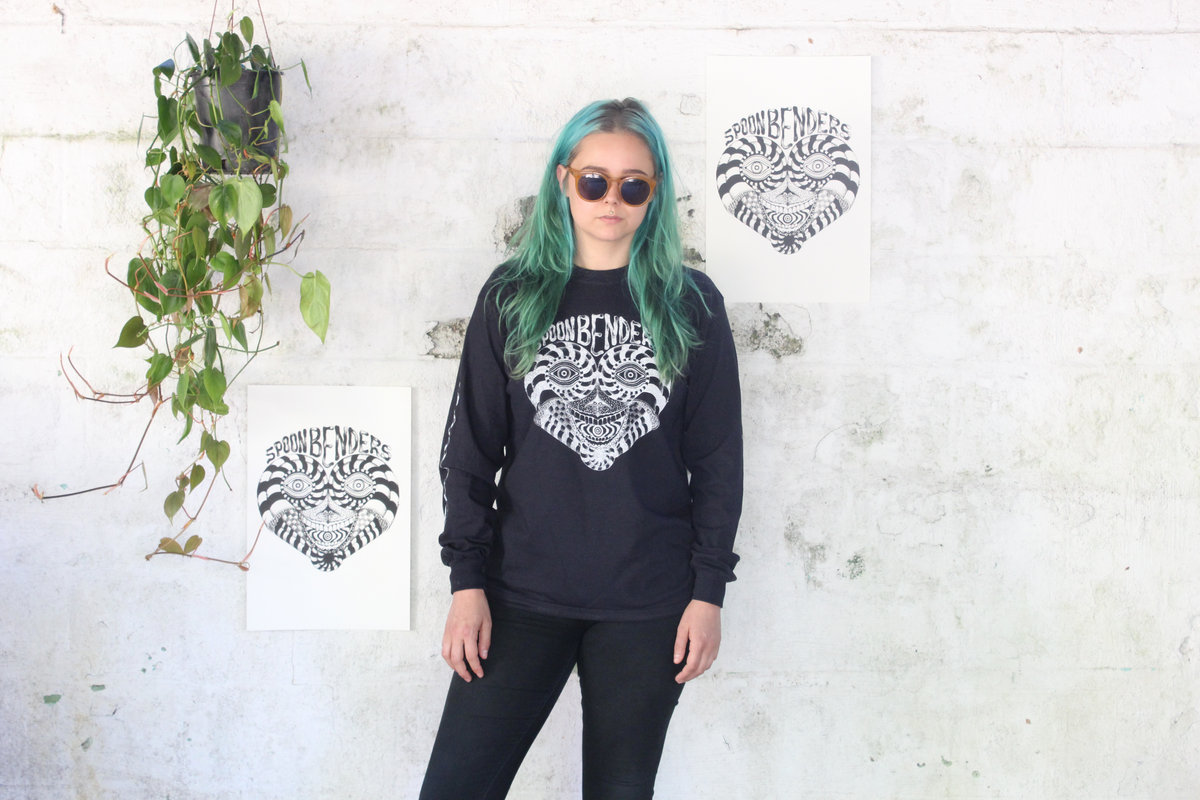 cotton natural white/black long sleeve shirt with OG spoon benders design featuring spoons on the sleeves!